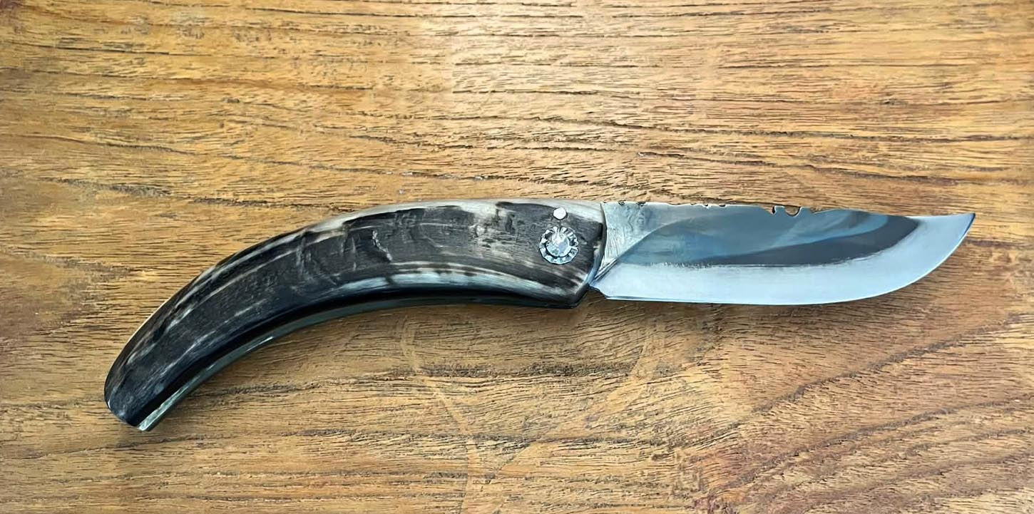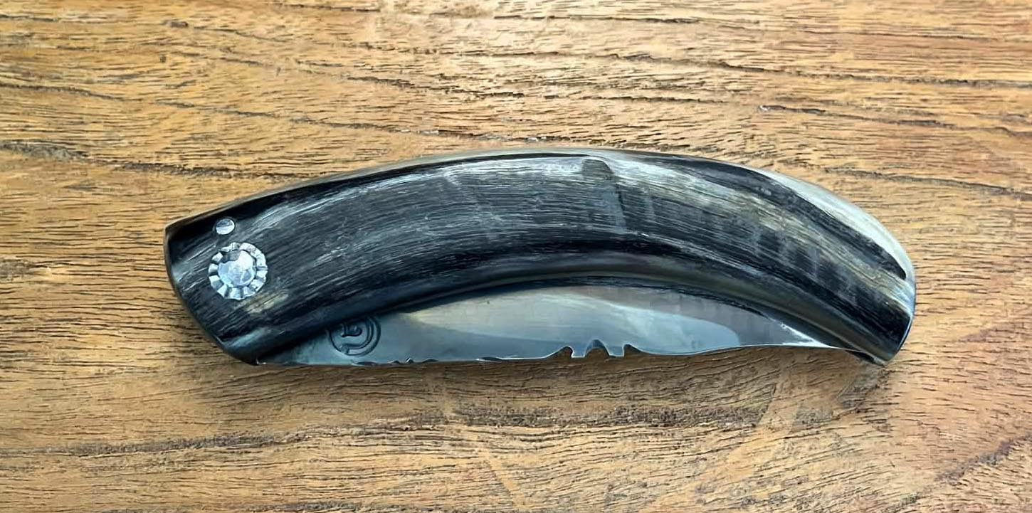 Accueil / Curnicciolu / Curnicciolu lame carbone XC75, corne de bélier Curnicciolu lame carbone XC75, corne de bélier190€ Curnicciolu, lame en acier carbone XC75 et manche en corne de bélier, réalisé par Jean-Noël Guillaumin, pièce unique. Lame : 9 cm En stock quantité de Curnicciolu lame carbone XC75, corne de bélier Acheter maintenant UGS : J-NO 237 Catégories : Curnicciolu, Jean-Noël GUILLAUMIN, Nouveautés Product ID: 8076 Produits similaires Curnicciolu lame carbone XC75, corne de bélier 190€ Acheter maintenant Curnicciolu lame carbone XC75, corne de bélier 190€ Acheter maintenant Curnicciolu lame carbone XC75, corne de bélier 240€ Acheter maintenant Cursinu lame carbone XC75, bois d’olivier sculpté 240€ Acheter maintenant