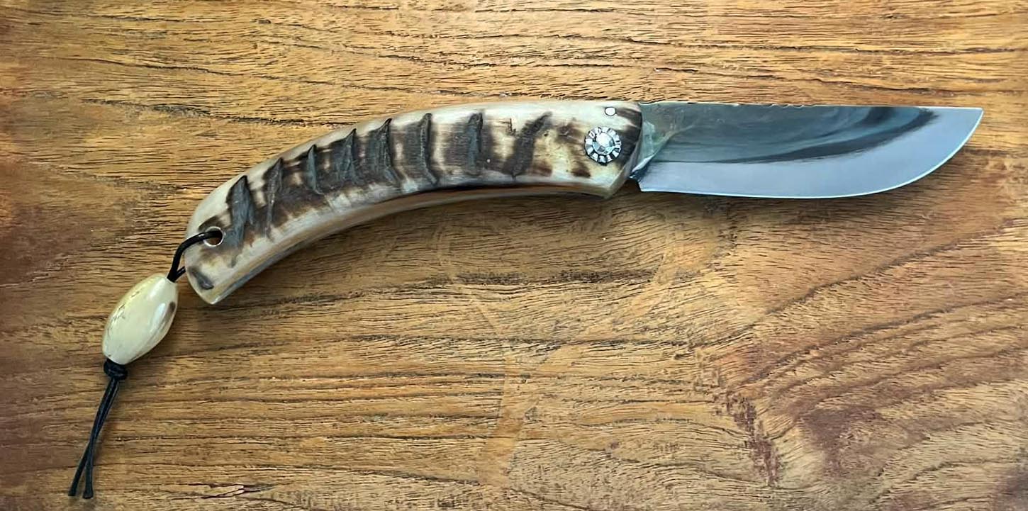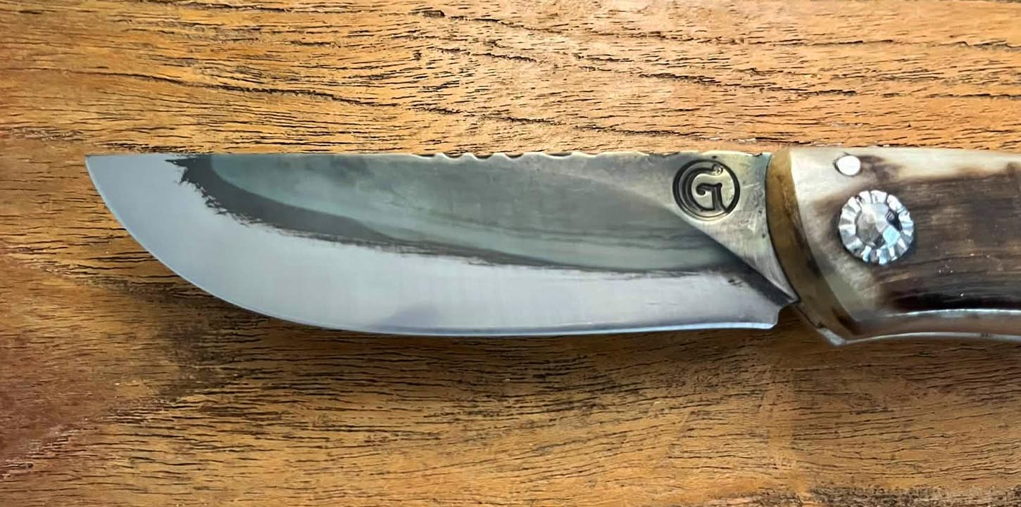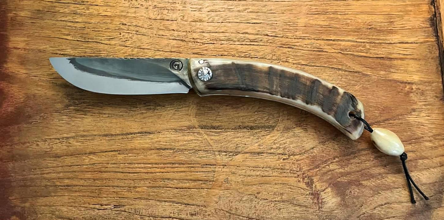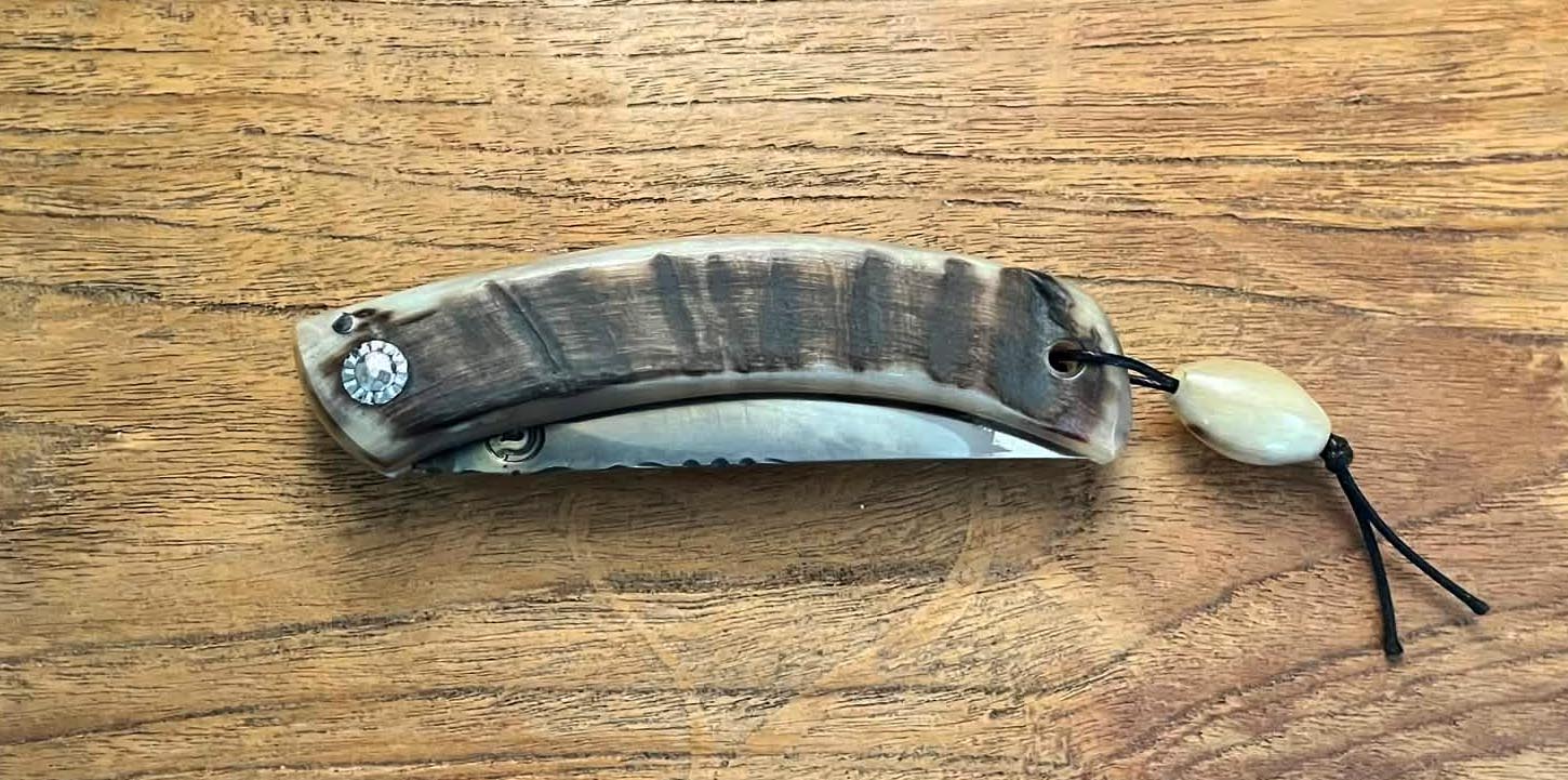 Accueil / Curnicciolu / Curnicciolu lame carbone XC75, corne de bélier Curnicciolu lame carbone XC75, corne de bélier220€ Curnicciolu, lame en acier carbone XC75 et manche en corne de bélier, réalisé par Jean-Noël Guillaumin, pièce unique. Lame : 9 cm En stock quantité de Curnicciolu lame carbone XC75, corne de bélier Acheter maintenant UGS : J-NO 242 Catégories : Curnicciolu, Jean-Noël GUILLAUMIN, Nouveautés Product ID: 8101 Produits similaires Curnicciolu lame carbone XC75, corne de bélier et cabochon en phacochère 220€ Acheter maintenant Piémontais, lame en acier carbone forgé, manche en corne de bélier 290€ Acheter maintenant Curnicciolu lame carbone XC75, corne de bélier 190€ Acheter maintenant Curnicciolu lame carbone XC75, corne de bélier et cabochon 220€ Acheter maintenant