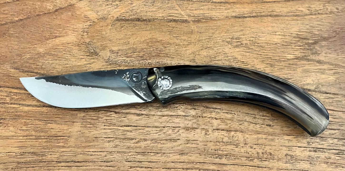 Accueil / Curnicciolu / Curnicciolu lame carbone XC75, corne de bélier Curnicciolu lame carbone XC75, corne de bélier190€ Curnicciolu, lame en acier carbone XC75 et manche en corne de bélier, réalisé par Jean-Noël Guillaumin, pièce unique. Lame : 8 cm En stock quantité de Curnicciolu lame carbone XC75, corne de bélier Acheter maintenant UGS : J-NO 221 Catégories : Curnicciolu, Jean-Noël GUILLAUMIN, Nouveautés Product ID: 7989 Produits similaires Curnicciolu, lame Damas 160 couches, corne de chèvre 900€ Acheter maintenant Curnicciolu, lame carbone forgée, corne de bouc 650€ Acheter maintenant Curnicciolu lame carbone XC75, corne de bélier 190€ Acheter maintenant Curnicciolu lame Damas, corne de bélier 390€ Acheter maintenant