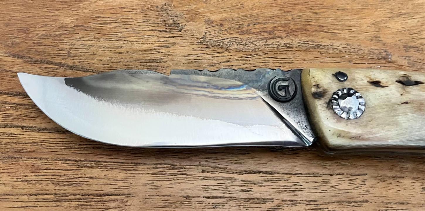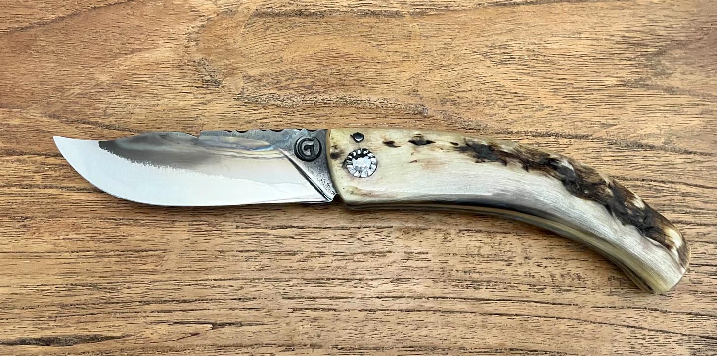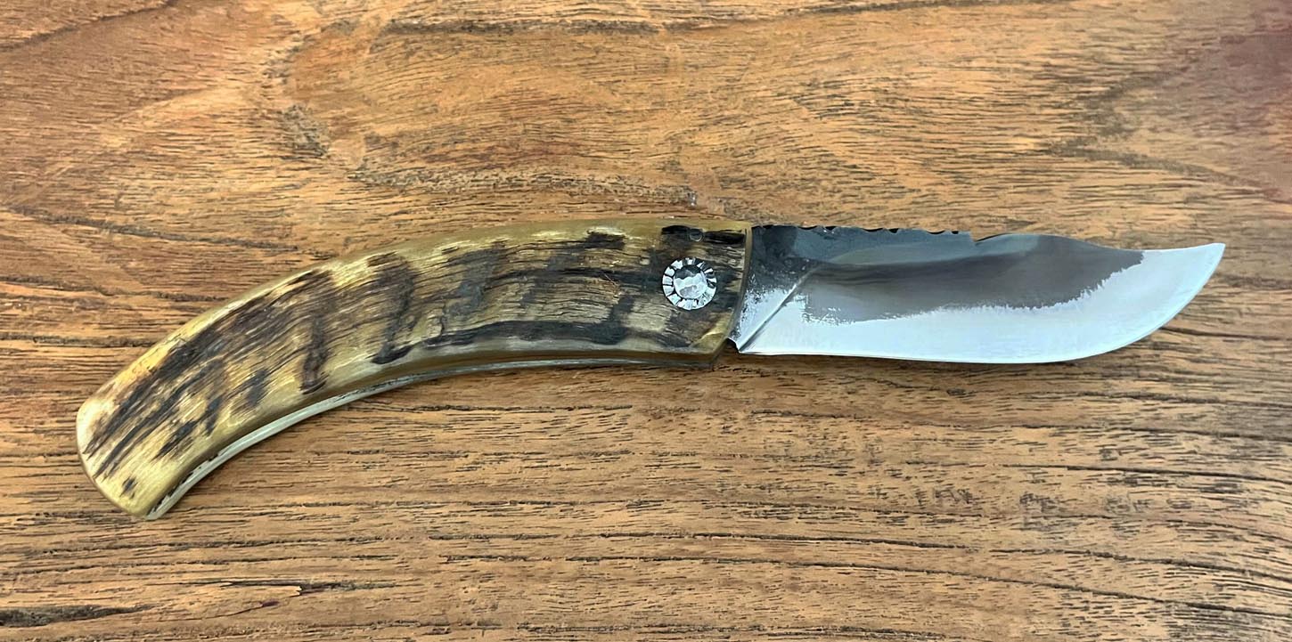 Accueil / Curnicciolu / Curnicciolu lame carbone XC75, corne de bélier Curnicciolu lame carbone XC75, corne de bélier190€ Curnicciolu, lame en acier carbone XC75 et manche en corne de bélier, réalisé par Jean-Noël Guillaumin, pièce unique. Lame : 8,5 cm En stock quantité de Curnicciolu lame carbone XC75, corne de bélier Acheter maintenant UGS : J-NO 223 Catégories : Curnicciolu, Jean-Noël GUILLAUMIN, Nouveautés Product ID: 7999 Produits similaires Curnicciolu modèle de la vallée d’Ascu lame carbone XC75, corne de bélier 220€ Acheter maintenant Cursinu lame carbone XC75, bois d’olivier 190€ Acheter maintenant Curnicciolu, lame carbone forgée, corne de chèvre 650€ Acheter maintenant Curnicciolu, lame carbone forgée, corne de chèvre 700€ Acheter maintenant