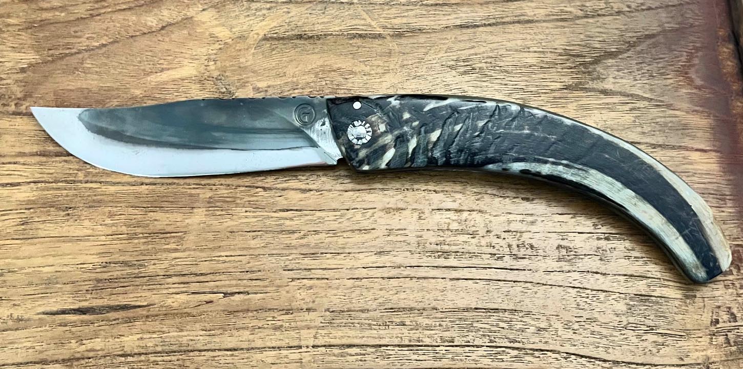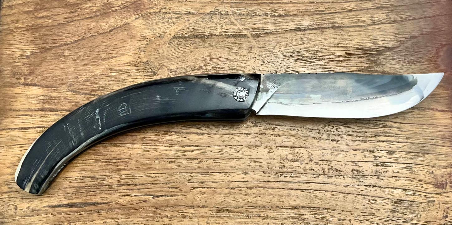 Accueil / Curnicciolu / Curnicciolu lame carbone XC75, corne de bélier Curnicciolu lame carbone XC75, corne de bélier250€ Curnicciolu, lame en acier carbone XC75 et manche en corne de bélier, réalisé par Jean-Noël Guillaumin, pièce unique. Lame : 12 cm En stock quantité de Curnicciolu lame carbone XC75, corne de bélier Acheter maintenant UGS : J-NO 216 Catégories : Curnicciolu, Jean-Noël GUILLAUMIN, Nouveautés Product ID: 7964 Produits similaires Curnicciolu lame carbone XC75, corne de bélier 190€ Acheter maintenant Curnicciolu, lame carbone forgée, corne de bouc 650€ Acheter maintenant Cursinu lame carbone XC75, bois d’olivier 190€ Acheter maintenant Cursinu, lame Damas, bois d’olivier 390€ Acheter maintenant