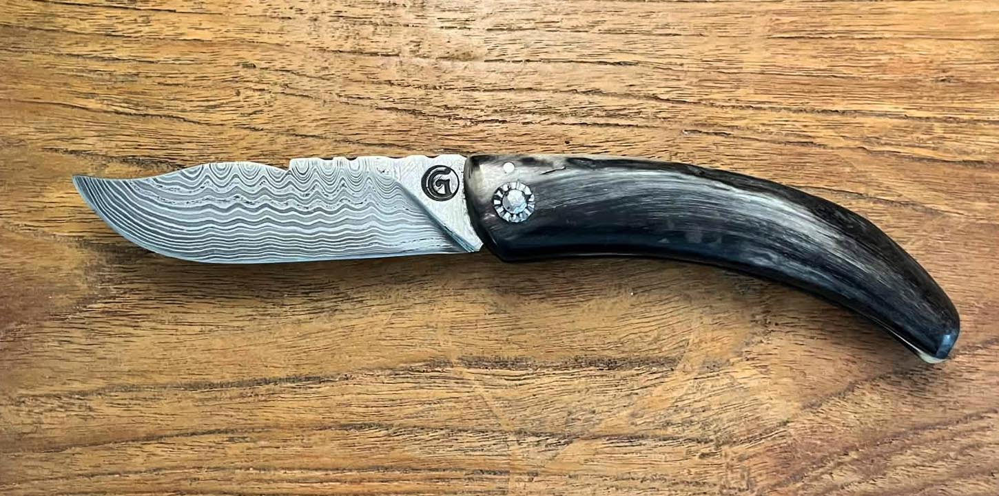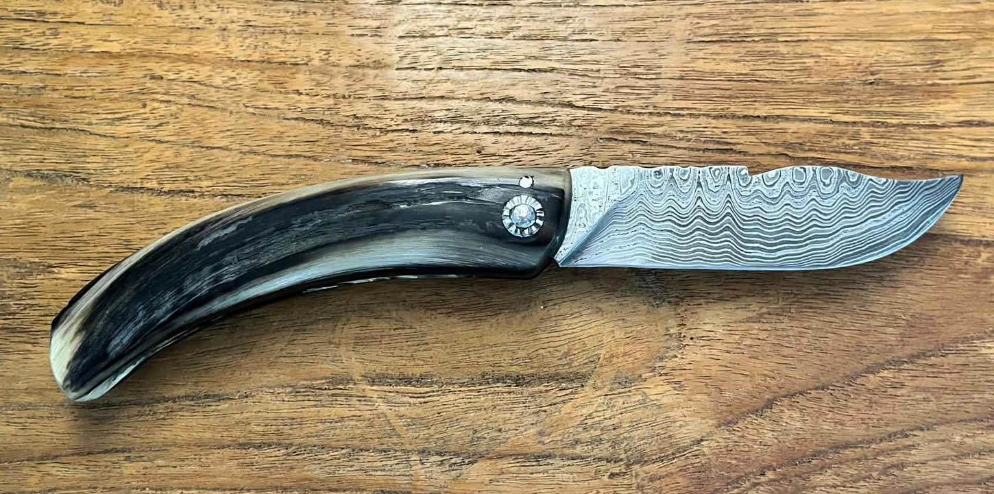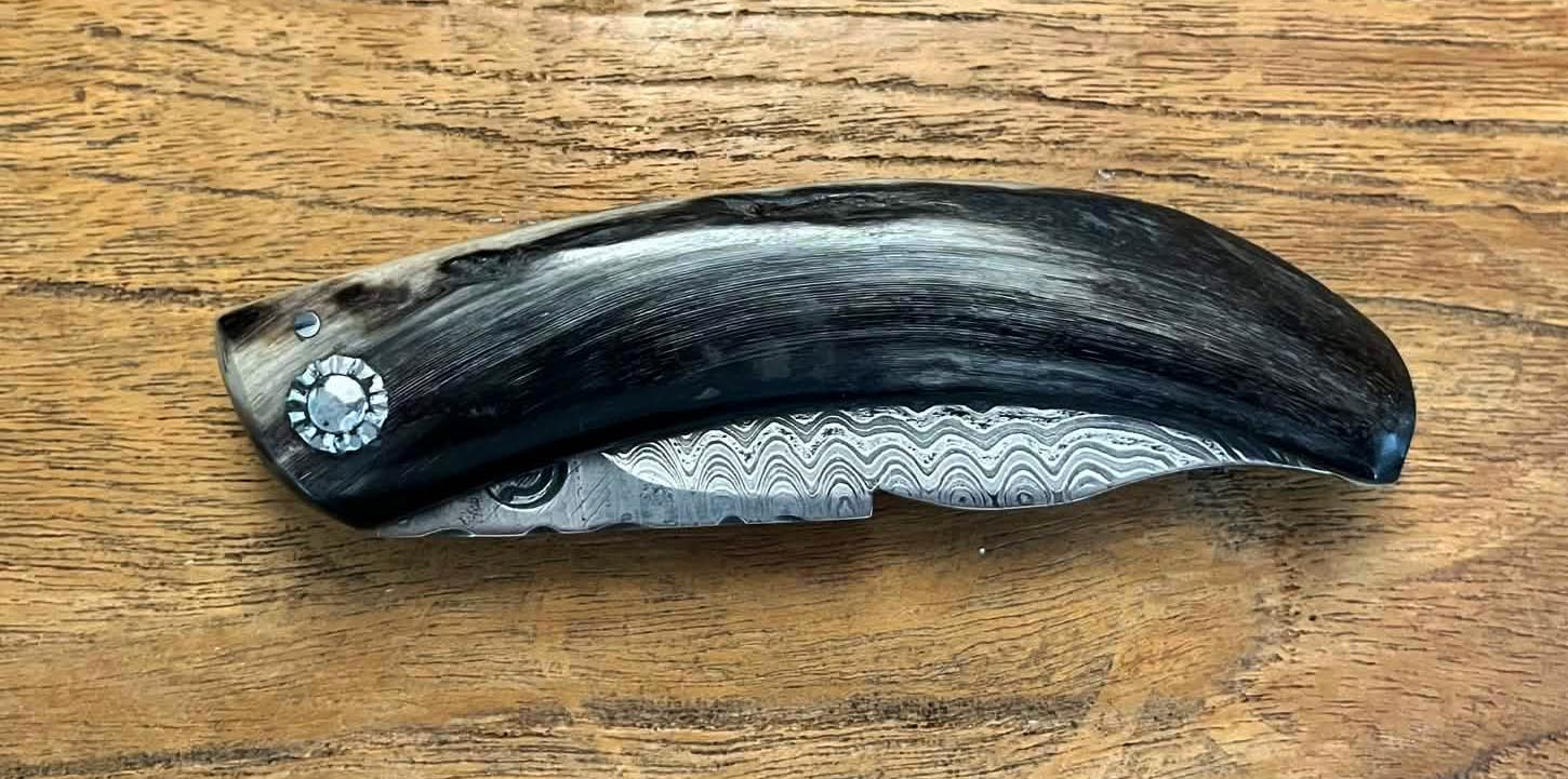 Accueil / Curnicciolu / Curnicciolu lame Damas 120 couches, corne de bélier Curnicciolu lame Damas 120 couches, corne de bélier390€ Curnicciolu, lame en acier Damas 120 couches et manche en corne de bélier, réalisé par Jean-Noël Guillaumin, pièce unique. Lame : 9 cm En stock quantité de Curnicciolu lame Damas 120 couches, corne de bélier Acheter maintenant UGS : J-NO 247 Catégories : Curnicciolu, Damas, Jean-Noël GUILLAUMIN, Nouveautés Product ID: 8126 Produits similaires Cursinu lame carbone XC75, bois d’olivier 190€ Acheter maintenant Curnicciolu lame carbone XC75, corne de bélier 190€ Acheter maintenant Curnicciolu lame carbone XC75, corne de bélier 190€ Acheter maintenant Cursinu lame carbone XC75, bois d’olivier 190€ Acheter maintenant