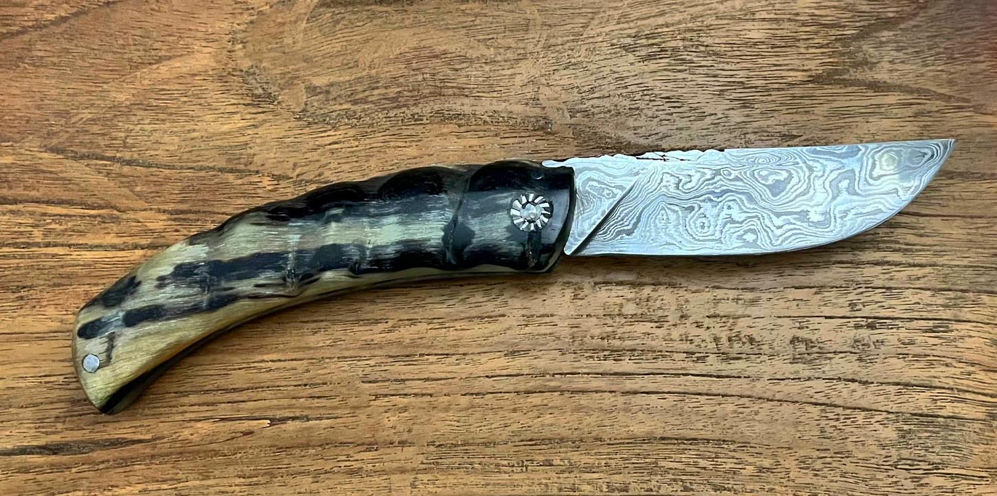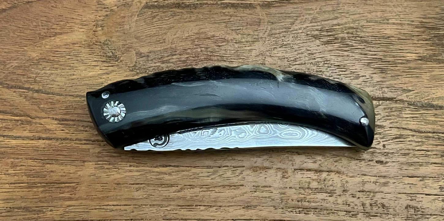 Accueil / Curnicciolu / Curnicciolu, lame Damas 280 couches, corne de bélier Curnicciolu, lame Damas 280 couches, corne de bélier390€ Curnicciolu, lame Damas 280 couches, corne de bélier, réalisé par Jean-Noël Guillaumin, pièce unique. Lame : 9,5 cm En stock quantité de Curnicciolu, lame Damas 280 couches, corne de bélier Acheter maintenant UGS : J-NO 217 Catégories : Curnicciolu, Damas, Jean-Noël GUILLAUMIN, Nouveautés Product ID: 7969 Produits similaires Curnicciolu lame carbone XC75, corne de bélier 190€ Acheter maintenant Curnicciolu modèle de la vallée d’Ascu lame carbone XC75, corne de bélier 220€ Acheter maintenant Cursinu lame carbone XC75, bois d’olivier sculpté 240€ Acheter maintenant Cursinu, lame Damas, bois d’olivier 390€ Acheter maintenant