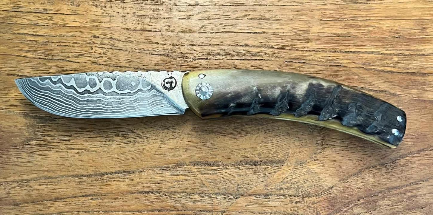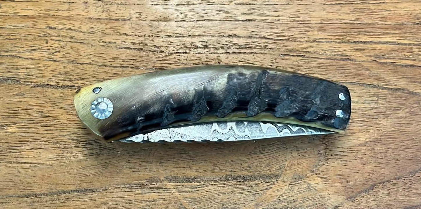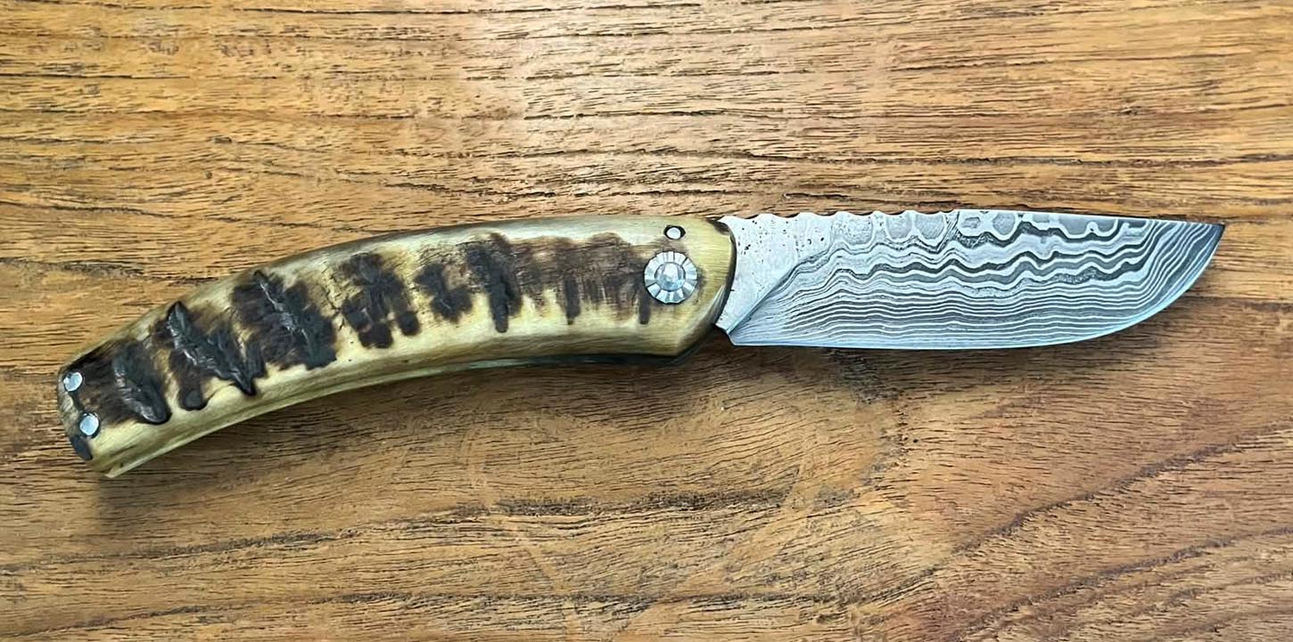 Accueil / Curnicciolu / Curnicciolu lame Damas 80 couches, corne de bélier Curnicciolu lame Damas 80 couches, corne de bélier390€ Curnicciolu, lame en acier Damas 80 couches et manche en corne de bélier, réalisé par Jean-Noël Guillaumin, pièce unique. Lame : 9 cm En stock quantité de Curnicciolu lame Damas 80 couches, corne de bélier Acheter maintenant UGS : J-NO 246 Catégories : Curnicciolu, Damas, Jean-Noël GUILLAUMIN, Nouveautés Product ID: 8121 Produits similaires Piémontais, lame en acier carbone forgé, manche en corne de bélier 290€ Acheter maintenant Cursinu lame carbone XC75, bois d’olivier sculpté 240€ Acheter maintenant Curnicciolu lame carbone XC75, corne de bélier 190€ Acheter maintenant Curnicciolu lame carbone XC75, corne de bélier 190€ Acheter maintenant