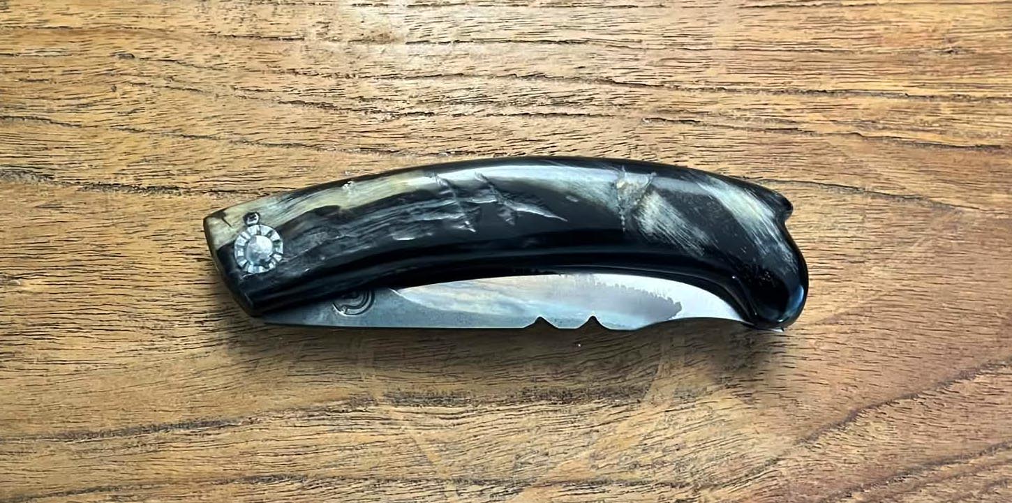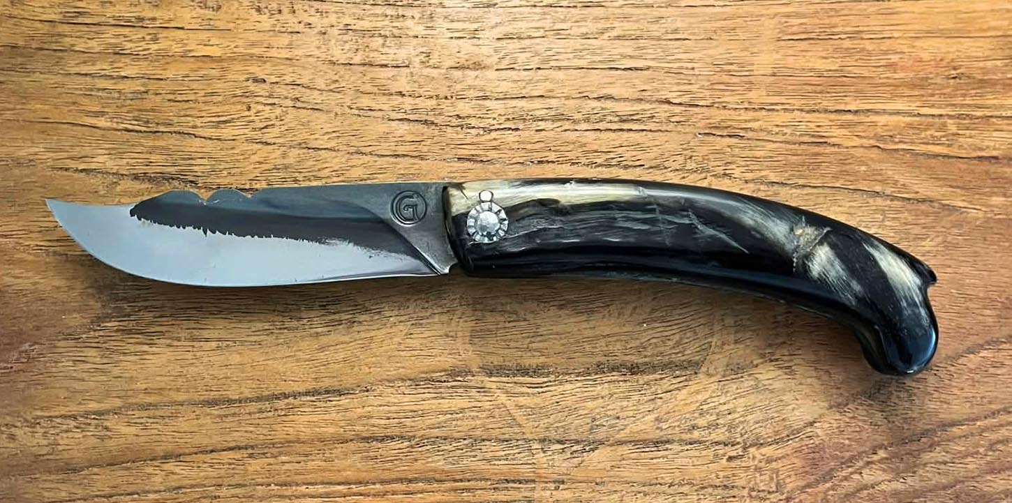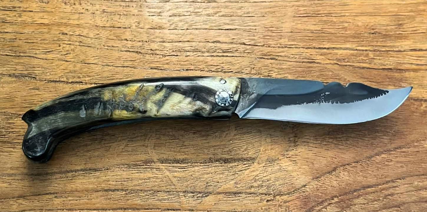 Accueil / Curnicciolu / Curnicciolu modèle de la vallée d’Ascu lame carbone XC75, corne de bélier Curnicciolu modèle de la vallée d’Ascu lame carbone XC75, corne de bélier220€ Curnicciolu, modèle de la vallée d’Ascu lame en carbone XC75 manche en corne de bélier, réalisé par Jean-Noël Guillaumin, pièce unique. Lame : 9 cm En stock quantité de Curnicciolu modèle de la vallée d'Ascu lame carbone XC75, corne de bélier Acheter maintenant UGS : J-NO 243 Catégories : Curnicciolu, Jean-Noël GUILLAUMIN, Nouveautés Product ID: 8106 Produits similaires Piémontais lame carbone XC75, corne de bélier 250€ Acheter maintenant Curnicciolu lame carbone XC75, corne de bélier 190€ Acheter maintenant Curnicciolu lame Damas 320 couches, corne de bélier et cabochon en phacochère 450€ Acheter maintenant Cursinu lame carbone XC75, bois d’olivier 190€ Acheter maintenant