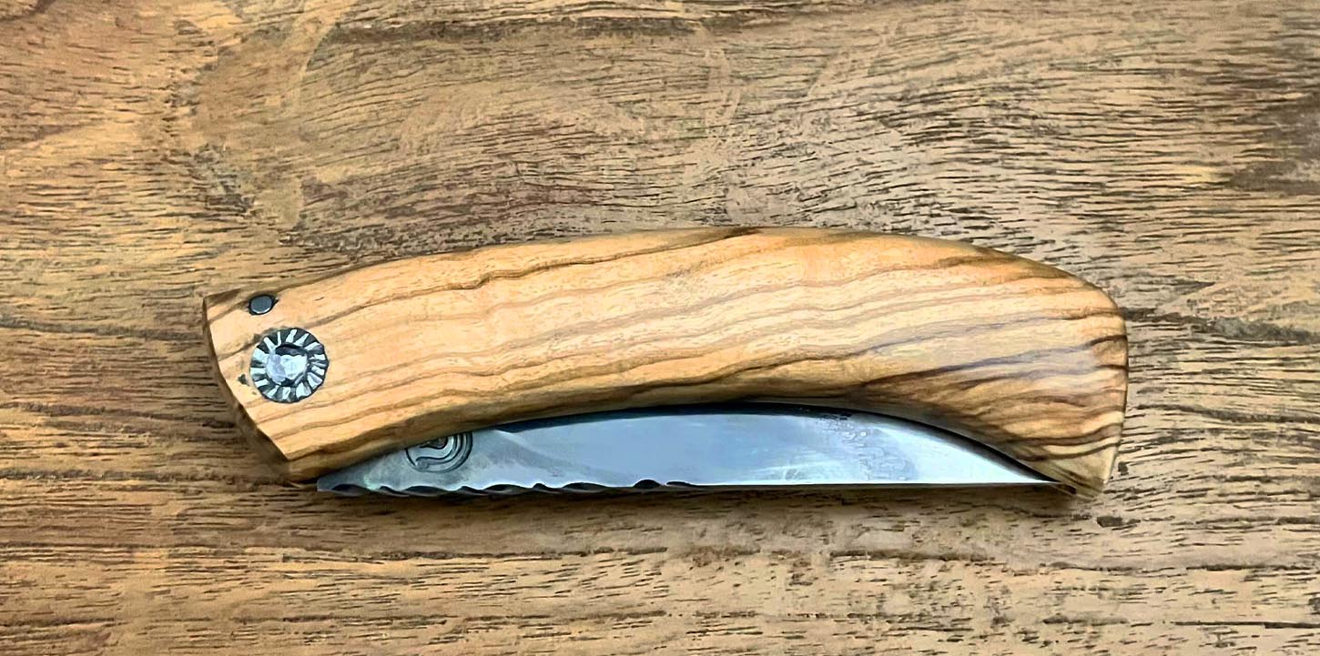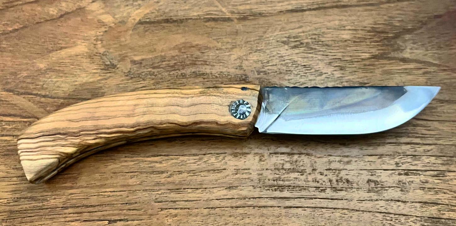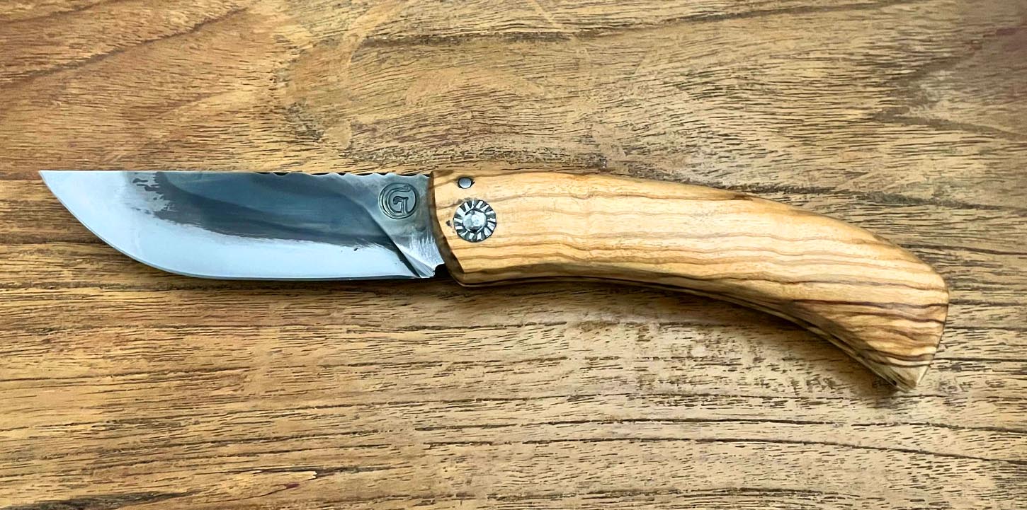 Accueil / Curnicciolu / Cursinu lame carbone XC75, bois d’olivier Cursinu lame carbone XC75, bois d’olivier190€ Cursinu, lame en acier carbone XC75 et manche en bois d’olivier, réalisé par Jean-Noël Guillaumin, pièce unique. Lame : 8,5 cm En stock quantité de Cursinu lame carbone XC75, bois d'olivier Acheter maintenant UGS : J-NO 215 Catégories : Curnicciolu, Jean-Noël GUILLAUMIN, Nouveautés Product ID: 7959 Produits similaires Curnicciolu lame carbone XC75, corne de bélier 190€ Acheter maintenant Curnicciolu lame Damas, corne de bélier 390€ Acheter maintenant Curnicciolu lame carbone XC75, corne de bélier 190€ Acheter maintenant Curnicciolu, lame carbone forgée, corne de chèvre 700€ Acheter maintenant
