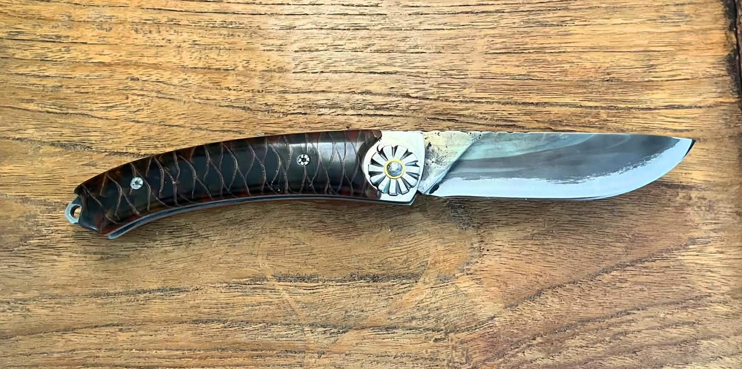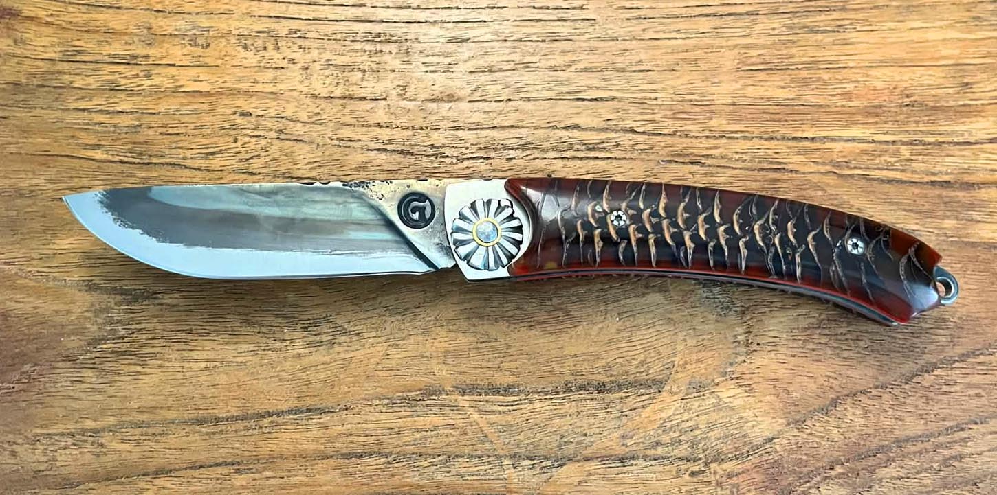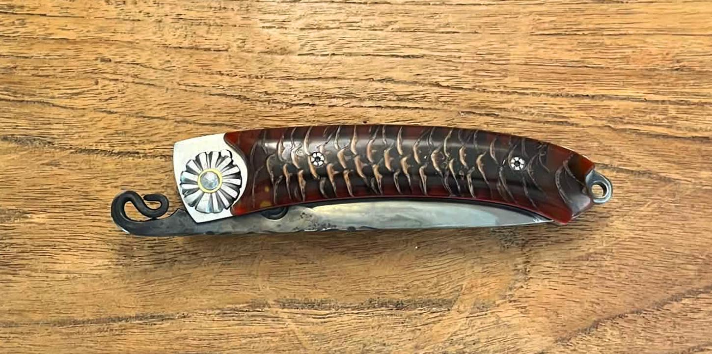 Accueil / Nouveautés / Piémontais en pomme de pin et lame en carbone XC75 Piémontais en pomme de pin et lame en carbone XC75380€ Piémontais, lame en acier carbone XC75 et manche en pomme de pin tranchée et résinée, réalisé par Jean-Noël Guillaumin, pièce unique. Lame : 8,75 cm En stock quantité de Piémontais en pomme de pin et lame en carbone XC75 Acheter maintenant UGS : J-NO 250 Catégories : Jean-Noël GUILLAUMIN, Nouveautés Product ID: 8141 Produits similaires Curnicciolu lame carbone XC75, corne de bélier et cabochon en phacochère 220€ Acheter maintenant Piémontais, lame carbone XC75, Erable 380€ Acheter maintenant Curnicciolu modèle de la vallée d’Ascu lame carbone XC75, corne de bélier 220€ Acheter maintenant Curnicciolu lame carbone XC75, corne de bélier 190€ Acheter maintenant